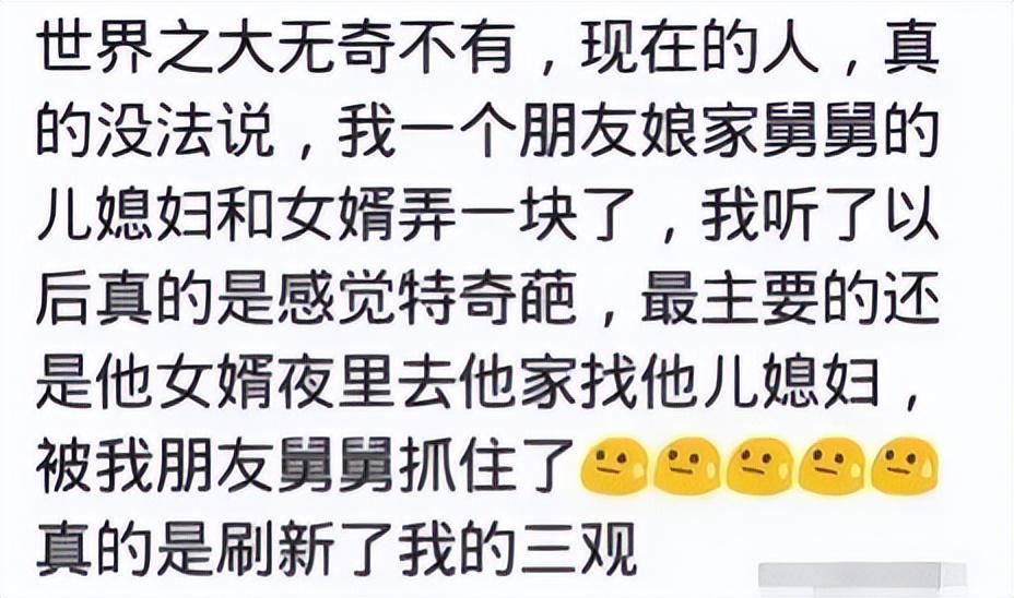 Xingkong sports-你们身边有哪些毁三观的事?网友:这一家人够乱的,辣眼睛啊
